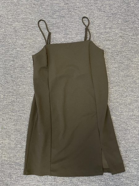 Description: Black strappy dress. Slight bobbling under right arm. H&M.
