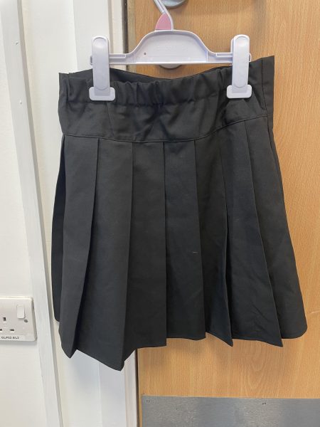 Description: New black skirt. 2 pleats either side at the front, more pleats at the back. Adjustable and elasticated waist. F+F @ Tesco.