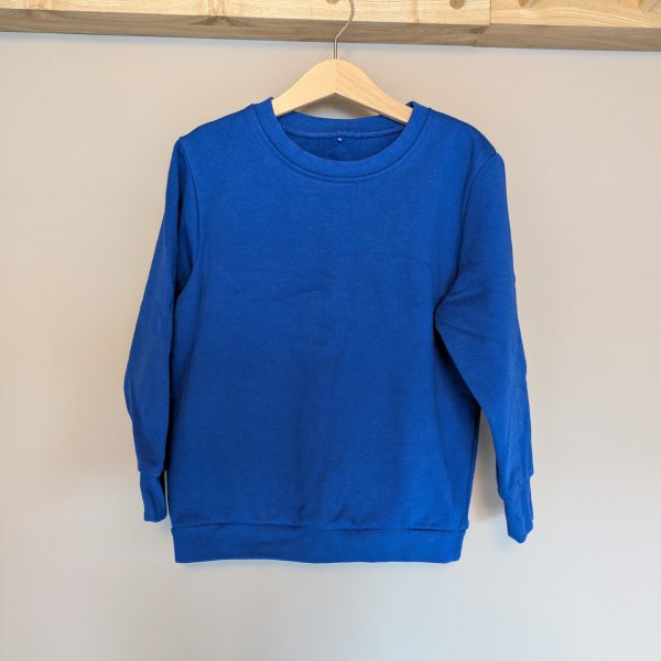 Description: Plain blue round neck jumper