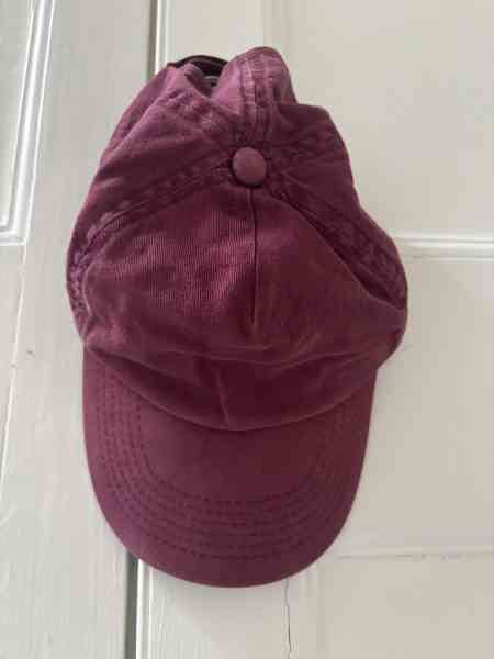Description: Burgundy base ball cap, non school branded. One size but with adjustable Velcro strap. Good condition.