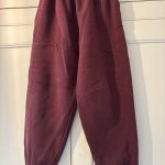 Description: Burgundy jogging bottoms. Elasticated waist and ankles. Good condition, slight wearing at the knees
