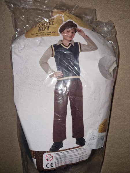 Description: Cream long sleeve shirt, vest, brown trousers cap