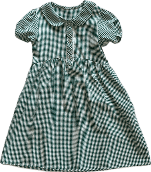 Description: George for Asda Gingham School Dress. Three front buttons with peter Pan Collar and elasticated puff sleeves . Code GD11