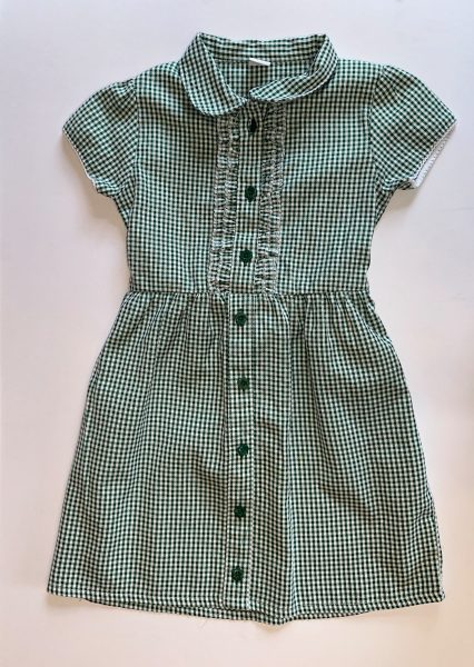 Description: Tu by Sainsbury Gingham School Dress – Button Front with Peter Pan collar and front frill. Tie Waist at Back. Code GD07