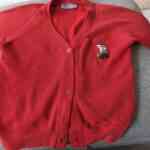 Description: Girls red button cardigan with logo