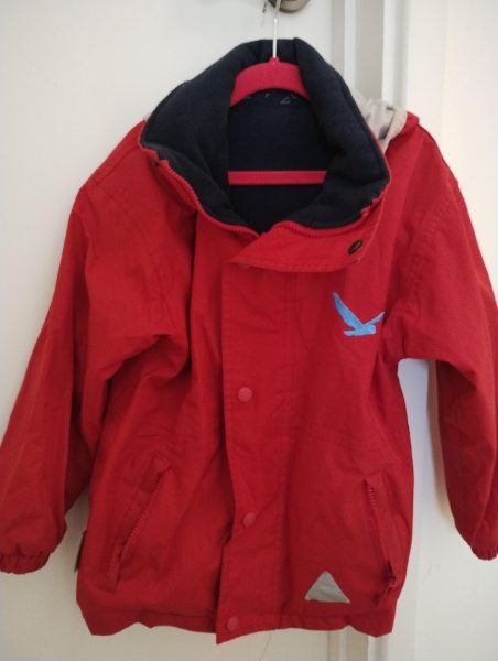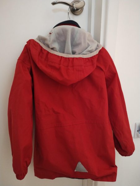 Description: There is a small tear in the lining of the hood and a mark on the front if you look closely. But all seams are still in tact