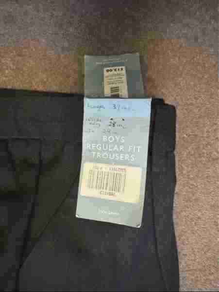 Description: John Lewis Charcoal Trousers – age 13 Brand new with Tags Waist 28 inches Length 39 inches Inside leg 28 inches