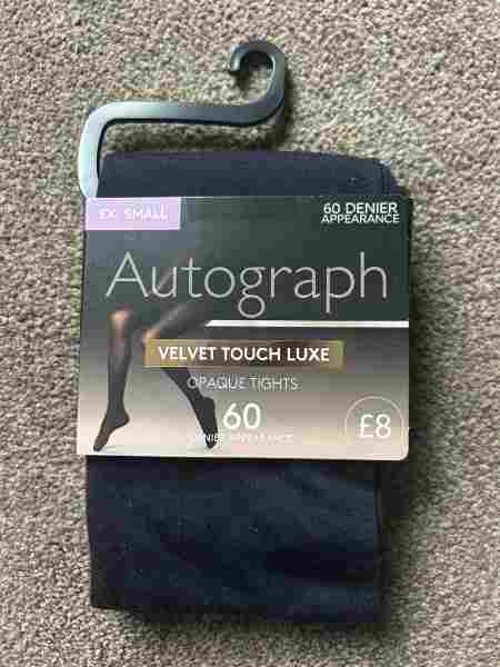 Description: A most luxurious feel makes these opaque tights a seasonal must have. The smooth velvety finish of these luxe tights allows them to blend seamlessly with any outfit while feeling fabulous against your skin. The flat seams sit against your contours for a neat appearance. https://www.marksandspencer.com/60-denier-velvet-touch-tights/p/clp22339128?color=NAVY See photo 2 for sizing.