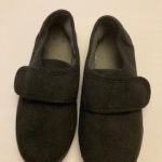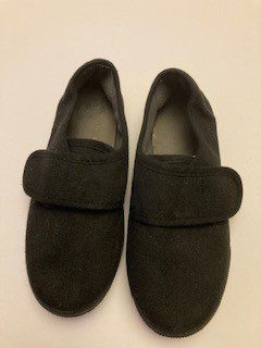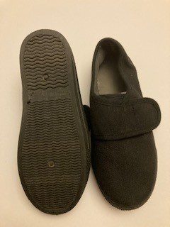 Description: Black Plimsoles with Velcro Strap and rubber soles.