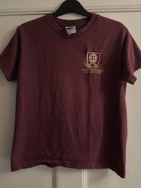 Description: Burgundy PE t-shirt with school logo