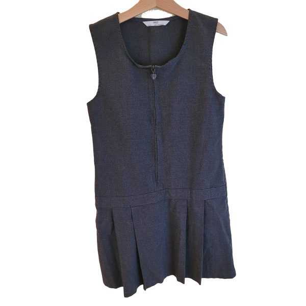Description: Grey Pinafore Dress with zip front fastening and pleats. Age 8-9. These items are in good condition or better. There may be some colour fading, bobbling or previous names. Photos are for illustration purposes only. The styles and brands will vary. If you are not satisfied with the item you receive, please contact us within 7 days of collection.