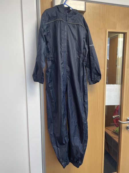 Description: Navy, lightweight puddle suit from Hazy Blue