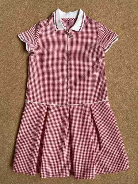 Description: Red gingham dress with zip front. Age 6-7 years. Two available. Can be bought separately £1 each.
