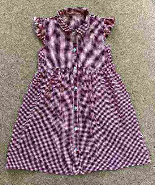 Description: Red gingham dress with button front. Age 7-8 years. Good condition. Two available. Can be bought separately £1 each