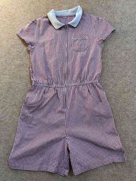 Description: Red gingham playsuit with zip front, two side pockets and one breast pocket. Two available. Can be bought separately £1 each.