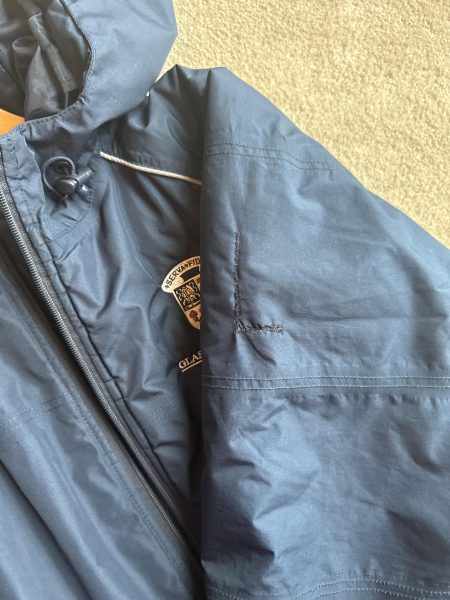 Description: Padded navigators jacket, in good condition except for a rip on the back of the upper arm that has been stitched up as photographed.