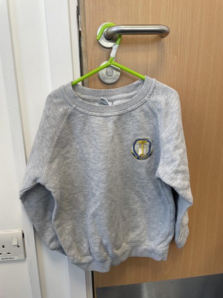 Description: Grey sweatshirt with the school badge Unisex Great for PE days