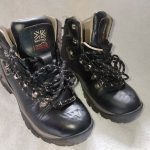 Description: Black leather Karrimor walking boots, in a UK size 3 (EU size 37). Labelled as “Ladies”, have tiny amount of purple at the back. Slight damage to stitching on one upper corner (see pic) but fully functional. Cleaned with leather balm and new laces. Please request to borrow from the 2nd Baldock Scouts Kit Library – please ignore the listed price!